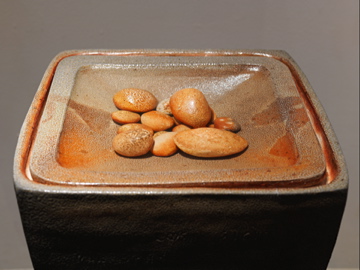 Depending on how you travel through the installation, you may then arrive at a house-shaped shrine, or a boulder with a pool of water in its recessed top that contains more stones – all made of clay. By now the viewer understands that she is in a kind of enchanted coastal rainforest, and that this is a gift: a rare opportunity to walk “inside” the mind of a daring artist who is a master of her craft. From out of the mud, Jefferson has rendered an environment with the soul and grace of a Japanese garden. Call it a West Coast Canadian garden.